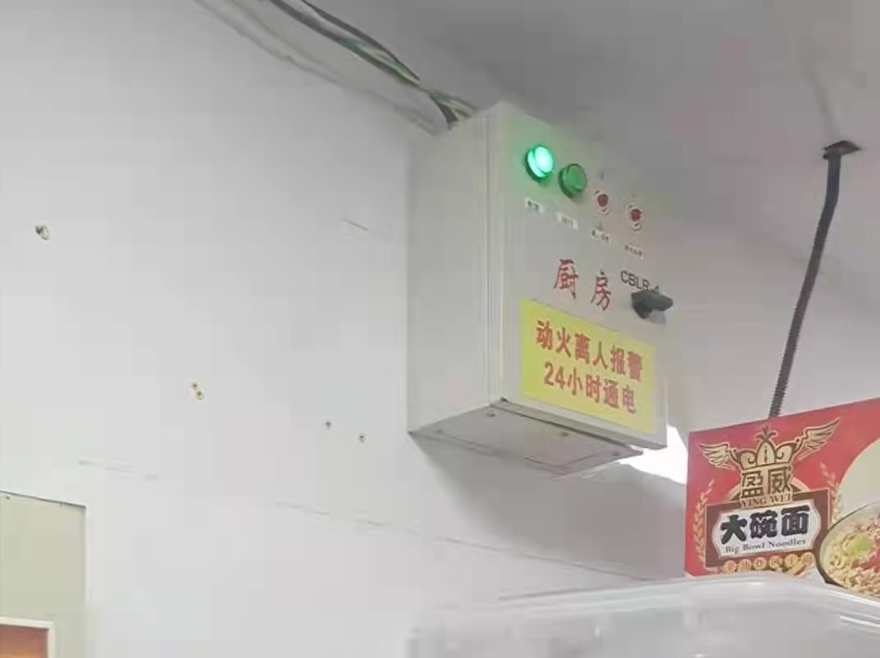 自動探測廚房動火作業時間段操作區域有無人員值守,當廚師離開動火區域超過系統預設延時報警時間,系統自動啟動現場聲光報警器,警示廚師及時回到操作崗位,如果廚師在預設時間內沒有回到工作崗位系統將關閉排風系統、灶具系統、主電源,并向消防中控室監控平臺報警,防止因動火離人而引發的油鍋著火、鍋燒干、意外熄火等安全隱患事故發生。